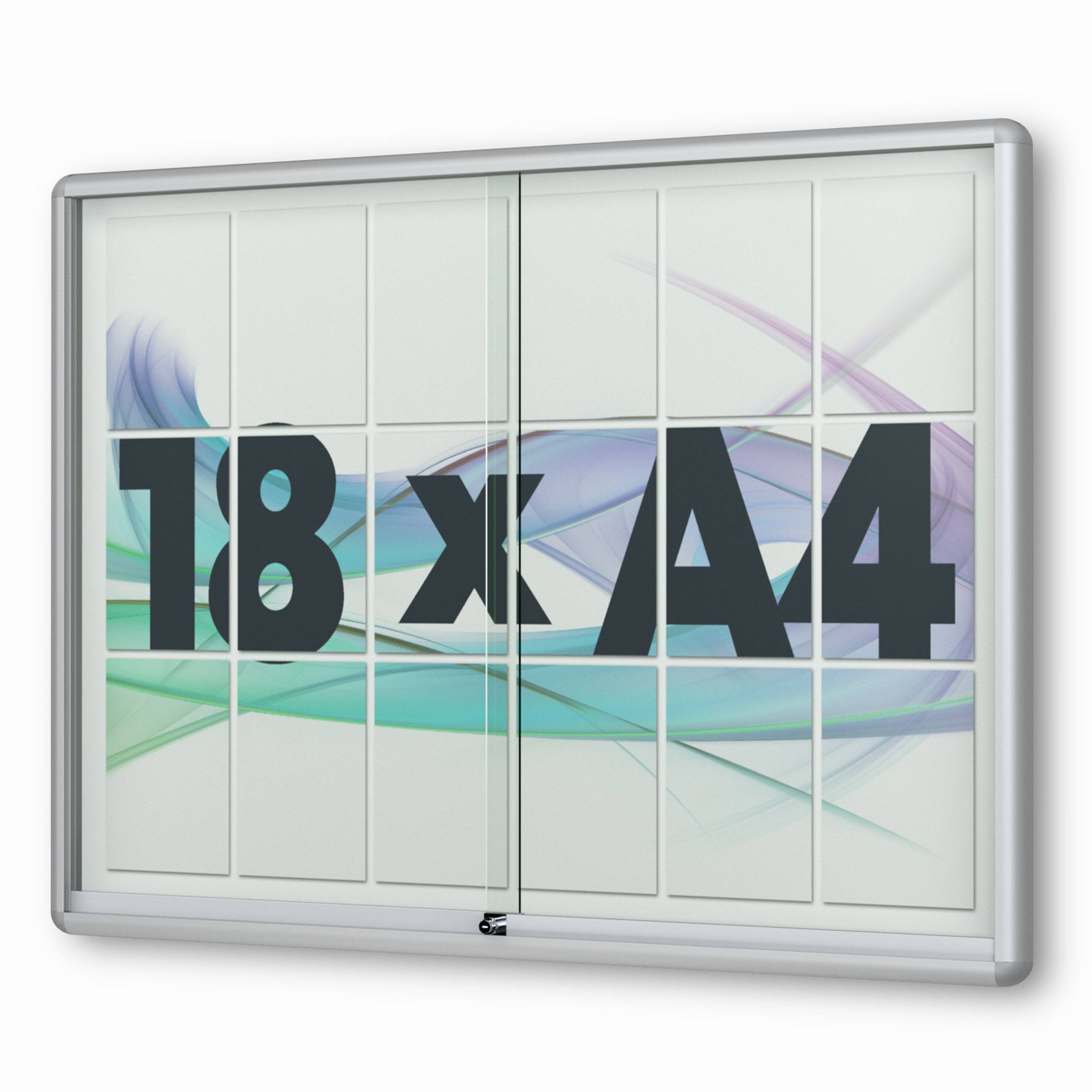 18 x DIN A4 Schaukasten Moveo - "die Schulvitrine" - mit Brandschutzklasse A1 - Rollengelagerte Schiebetüren✓ abschließbar✓ ESG-Sicherheitsglas✓