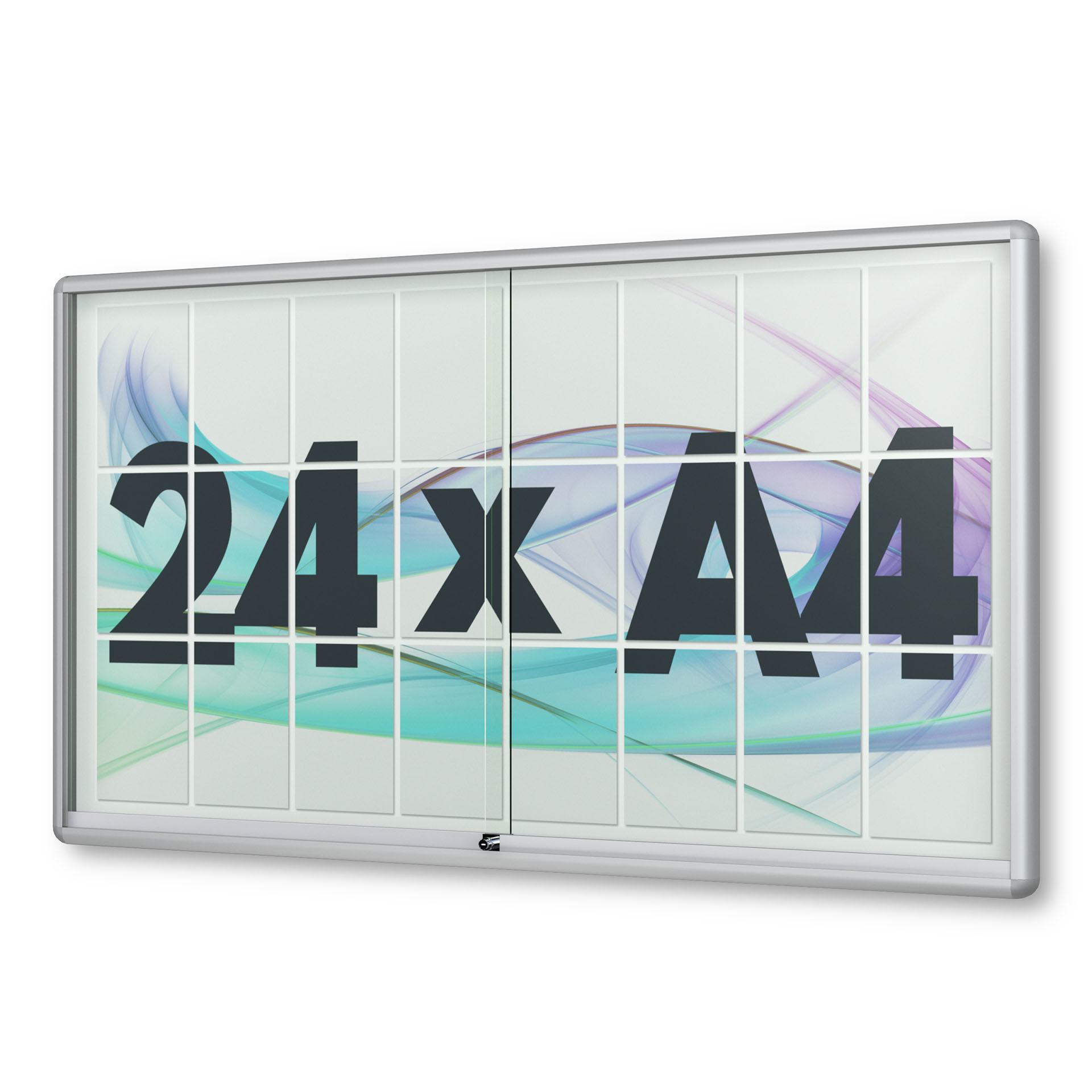 24 x DIN A4 Schaukasten Moveo - "die Schulvitrine" - mit Brandschutzklasse A1 - Rollengelagerte Schiebetüren✓ abschließbar✓ ESG-Sicherheitsglas✓