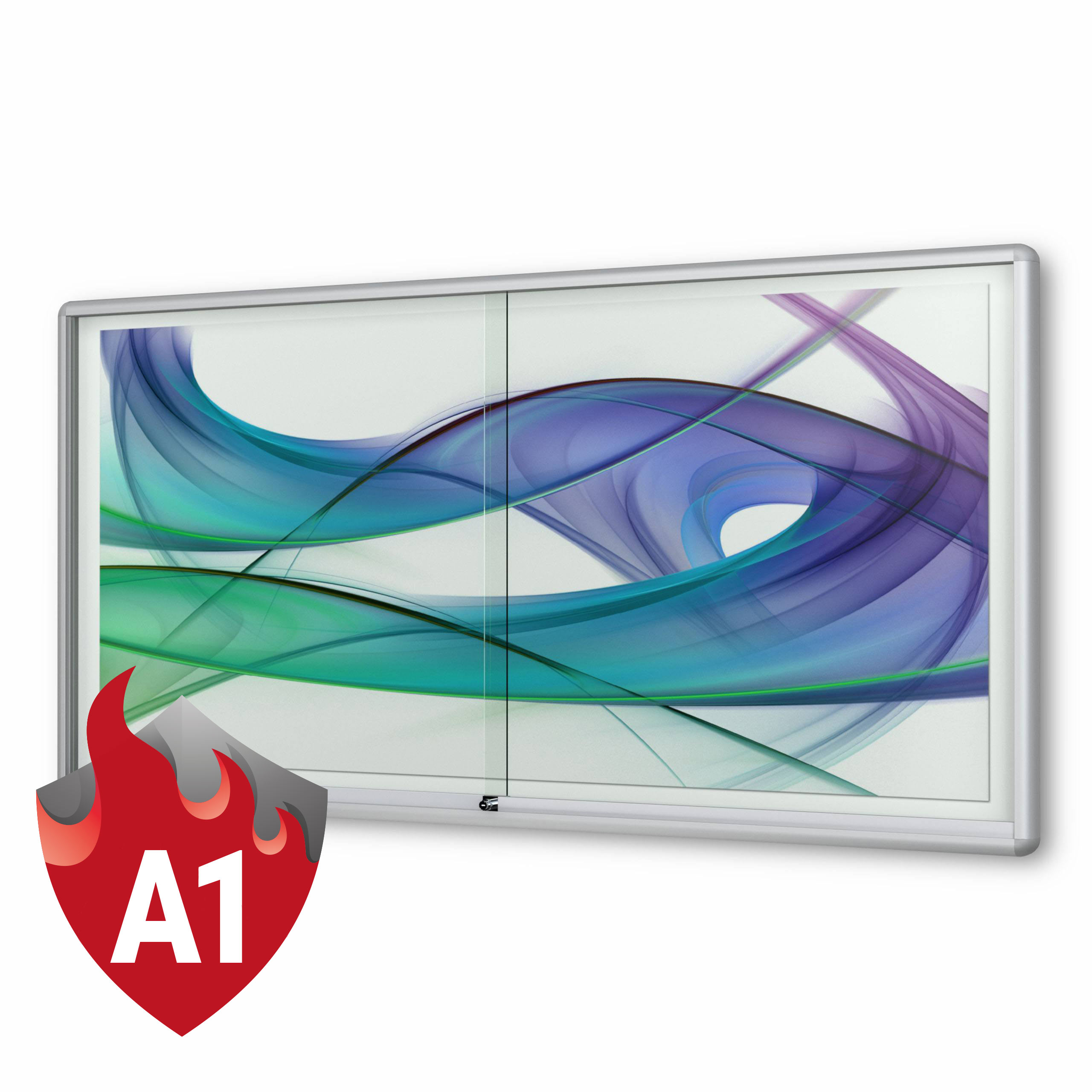 - Merkmale Schaukasten: abschliessbar, mit Schiebetüren, Brandschutz, Wandmontage, magnetisch
