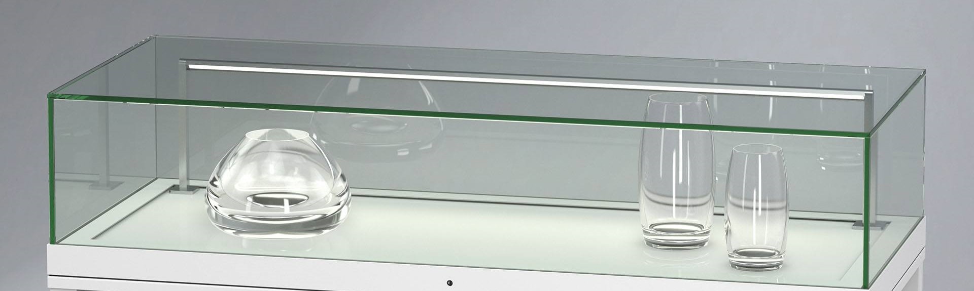 Tischvitrine aus Glas und Alu-Profil - optional mit Brandschutz